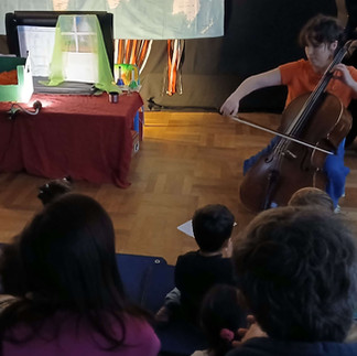 Dame Dindon autour du Monde tourne actuellement à Nantes dans les CSC et s'invite maintenant chez vous avec plaisir ! Dans ce spectacle familial et interactif résonnent mots en rimes simples, chant, accordéon et violoncelle.